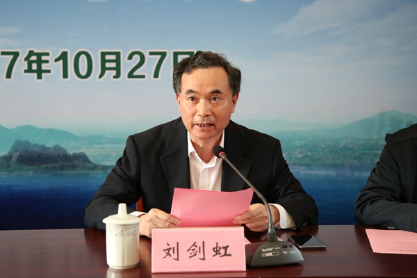 刘剑虹为研究中心成立致辞。他指出,在全国上下认真学习贯彻党的十九大精神,深入推进美丽中国建设的大背景下,我校成立“两山”重要思想研究中心,这是我校的一件大事、喜事!“两山”重要思想被写入了党代会报告和《党章》,这是一个重大历史事件,其中也体现了鲜明的“湖州元素”,作为“两山”重要思想诞生地的高等学府,我校师生倍感亲切与自豪,也深知肩上的责任。此时成立“两山”重要思想研究中心,正是这种责任的具体体现,也是我校学习贯彻十九大精神的重要举措。他强调,我校扎根在“两山”重要思想的诞生地,理应承担起研究和实践“两山”重要思想的历史使命,努力把“两山”重要思想的研究推向新高度,开辟出践行“两山”重要思想的新境界。研究中心要勇于担当,联合校内外各领域研究力量,组建一支高精尖的研究团队;通过多种形式加强对外交流,扩大中心影响力;要以“两山”重要思想为引领开展中国特色社会主义生态文明研究,着力构建服务国家生态文明重大战略、服务“六个浙江”建设的新型智库,努力将中心打造成“两山”重要思想的前沿理论问题研究和地方绿色发展现实问题研究的高地,为传播与践行习近平新时代中国特色社会主义思想作出贡献。