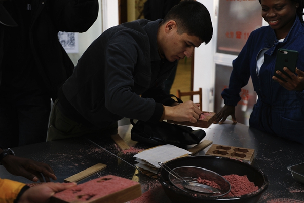国际学生们体验了湖州传统美食——定胜糕的制作过程。在师傅的指导下,国际学生们亲手尝试了磨米、拌料、蒸糕等一系列工序,感受到了中国饮食文化的魅力,也增进了对中国传统文化的兴趣和理解。
